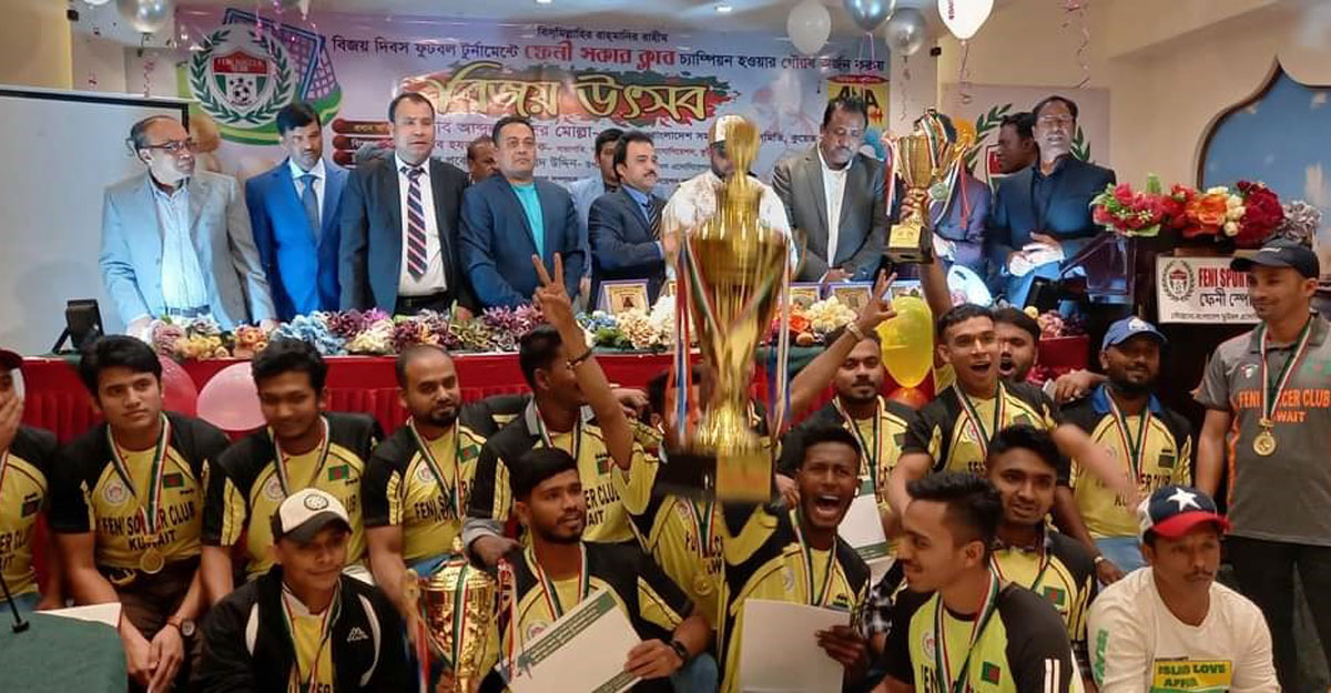 কুয়েতে বাংলাদেশ ফুটবল অ্যাসোসিয়েশনের উদ্যোগে আয়োজিত বিজয় দিবস ফুটবল টুর্নামেন্টে ফেনী সকার ক্লাব চ্যাম্পিয়ন হওয়ার গৌরব অর্জন করায় বিজয় উৎসব ও সাংস্কৃতিক অনুষ্ঠানের আয়োজন করা হয়। বৃহস্পতিবার (৩ মার্চ) সন্ধ্যায় খাইতান প্যালেস হোটেলে এ বিজয় উৎসব অনুষ্ঠিত হয়।