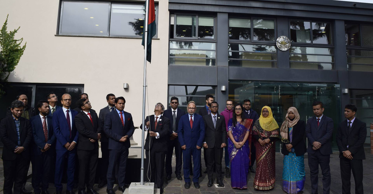 সকাল ৯টা ৩১ মিনিটে রাষ্ট্রদূত মো. শামীম আহসান জাতীয় সঙ্গীতের সঙ্গে আনুষ্ঠানিকভাবে জাতীয় পতাকা উত্তোলন করে দিনের কর্মসূচির সূচনা করেন। সকাল ১০টায় দূতাবাসের সভাকক্ষে ডিজিটাল প্লাটফর্মে আয়োজিত বিশেষ অনুষ্ঠানের শুরুতেই দিবসটি উপলক্ষে রাষ্ট্রপতি, প্রধানমন্ত্রী, পররাষ্ট্রমন্ত্রী এবং পররাষ্ট্র প্রতিমন্ত্রীর দেওয়া বাণী পাঠ করা হয়। দিবসের গুরুত্ব ও তাৎপর্য বিষয়ে বিশেষ আলোচনা সভায় বিভিন্ন সামাজিক, সাংস্কৃতিক ও রাজনৈতিক সংগঠনের প্রতিনিধিরা ও প্রবাসী বাংলাদেশি নাগরিকরা অংশগ্রহণ করেন।