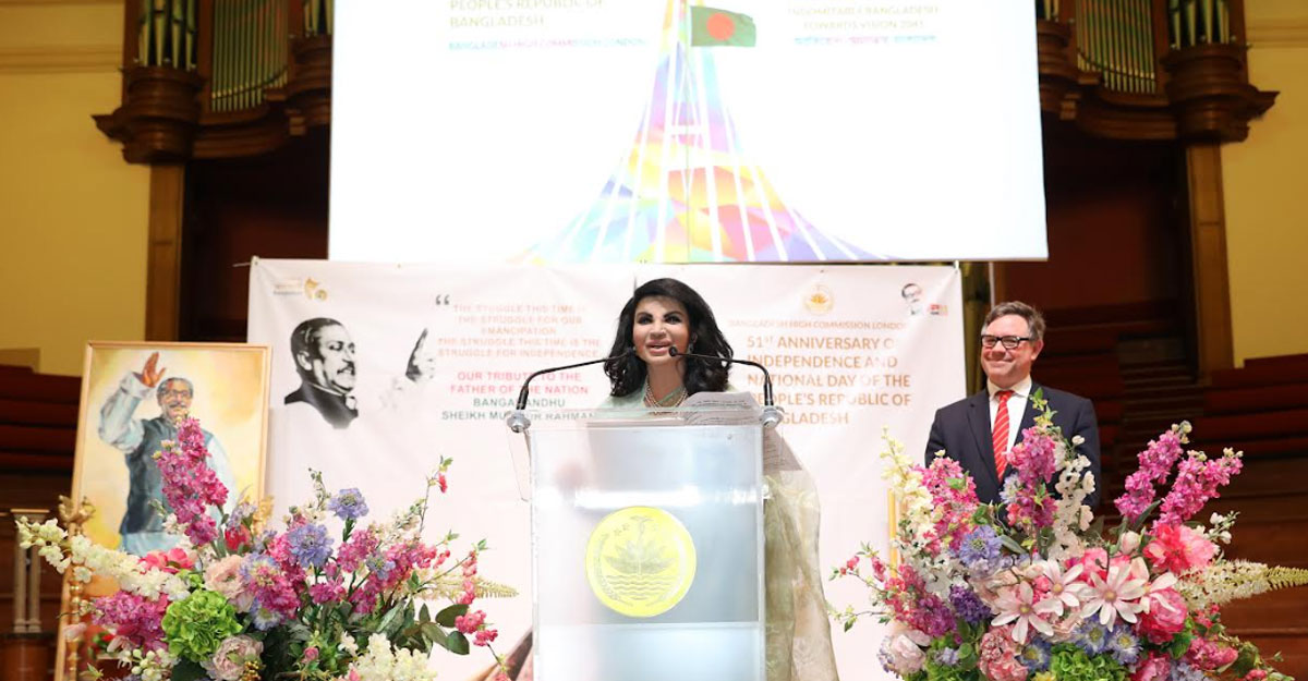 স্বাধীনতা ও জাতীয় দিবস উদযাপনে যুক্তরাজ্যে নিযুক্ত বাংলাদেশের হাইকমিশনার সাইদা মুনা তাসনীমের দেওয়া এক সংবর্ধনায় ব্রিটিশ মন্ত্রী ও সিনিয়র সংসদ সদস্যরা জাতির পিতা বঙ্গবন্ধু শেখ মুজিবুর রহমানের প্রতি গভীর শ্রদ্ধা জ্ঞাপন করে অর্থনৈতিক প্রবৃদ্ধি অর্জনে, জলবায়ু পরিবর্তনের ঝুঁকি মোকাবিলায়, গণতন্ত্র ও আঞ্চলিক নিরাপত্তা জোরদারে প্রধানমন্ত্রী শেখ হাসিনার অসামান্য নেতৃত্বের অকুন্ঠ প্রশংসা করেন।