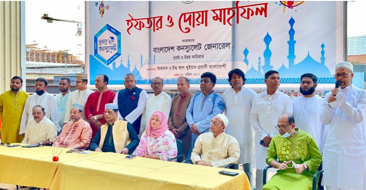সংযুক্ত আরব আমিরাতে প্রবাসী বাংলাদেশিদের জন্য দোয়া ও ইফতার মাহফিলের আয়োজন করেছে দুবাই ও উত্তর আমিরাত বাংলাদেশ কনস্যুলেট জেনারেল। এতে আজমান ও উম্ম আল কুইয়ান প্রবাসী বাংলাদেশিরা অংশ নেন।