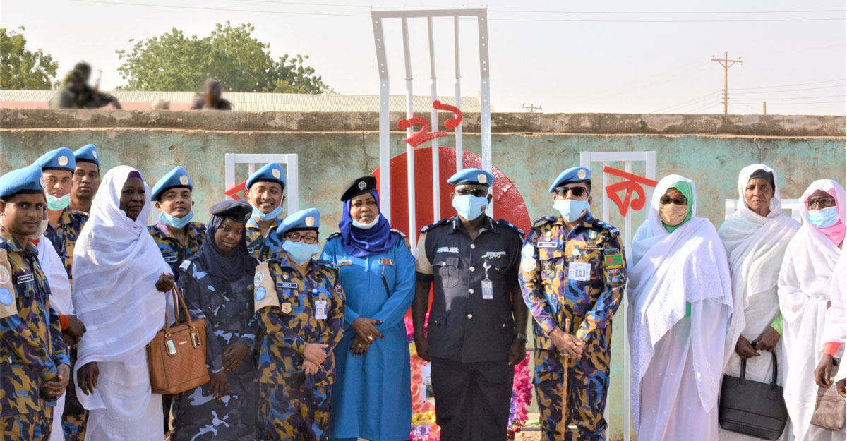শহীদ মিনার উদ্বোধন অনুষ্ঠানে প্রধান অতিথি হিসেবে উপস্থিত ছিলেন উনামিডের পুলিশ চিফ অফ স্টাফ জেনারেল আহমাদো মান্না, বিশেষ অতিথি ছিলেন স্কুলের প্রধান শিক্ষক মোনা বাদুই আব্দেল, উত্তর দারফুরে লিয়াজো অফিসার কর্নেল আমির ও ব্যানএফপিইউ কমান্ডার মোহাম্মদ আব্দুল হালিম। অনুষ্ঠান সঞ্চালনা করেন মিশরের পুলিশ মেজর ইসলাম কান্দেল।