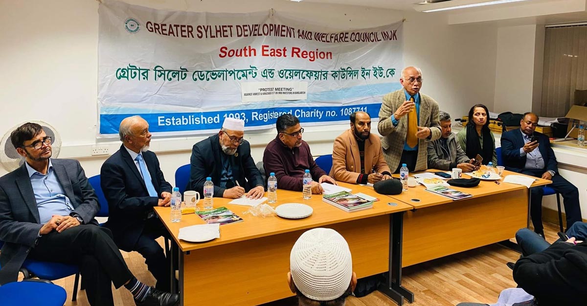 যুক্তরাজ্যের সাত প্রবাসী ব্যবসায়ীকে বাংলাদেশে চক্রান্তমূলক মামলায় হয়রানি ও গ্রেপ্তারের প্রতিবাদে গ্রেটার সিলেট ডেভেলপমেন্ট অ্যান্ড ওয়েলফেয়ার কাউন্সিল (জিএসসি) সাউথইস্ট রিজিওনের উদ্যোগে এক প্রতিবাদ সভা অনুষ্ঠিত হয়েছে। বৃহস্পতিবার (৬ অক্টোবর) লন্ডনে সংগঠনের কেন্দ্রীয় কার্যালয়ে অনুষ্ঠিত সভায় সভাপতিত্ব করেন সংগঠনের চেয়ারপারসন এম এ আজিজ ও সঞ্চালনা করেন সাধারণ সম্পাদক ফজলুল করিম চৌধুরী।