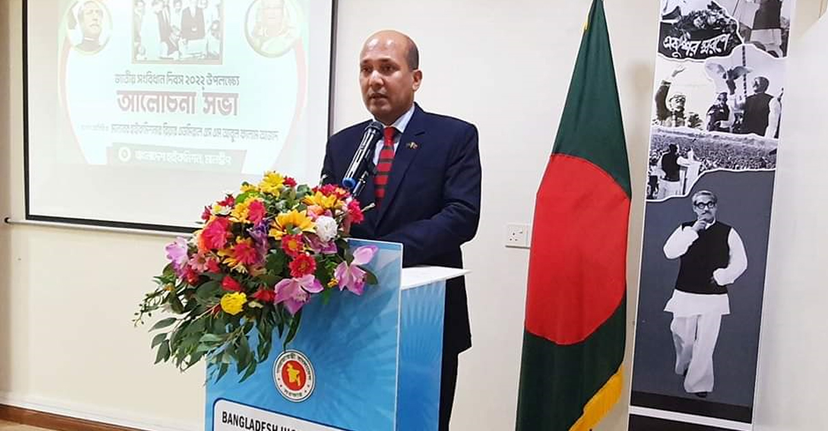 প্রধান অতিথি হিসাবে উপস্থিত ছিলেন হাইকমিশনার রিয়ার এডমিরাল এস এম আবুল কালাম আজাদ। তিনি তার বক্তব্যে বলেন, স্বাধীনতার পর পরই দেশ পুনর্গঠনের অংশ হিসেবে এবং দেশে আইনের শাসন প্রতিষ্ঠায় সর্বকালের সর্বশ্রেষ্ঠ বাঙালি জাতির পিতা বঙ্গবন্ধু শেখ মুজিবুর রহমানের নেতৃত্বে ও ঐকান্তিক প্রচেষ্টায় গণপ্রজাতন্ত্রী বাংলাদেশের পবিত্র সংবিধান রচিত হয়েছিল। এত সংক্ষিপ্ত সময়ে সংবিধান রচনা ও কার্যকর করা বিশ্বের ইতিহাসে বিরল ঘটনা।