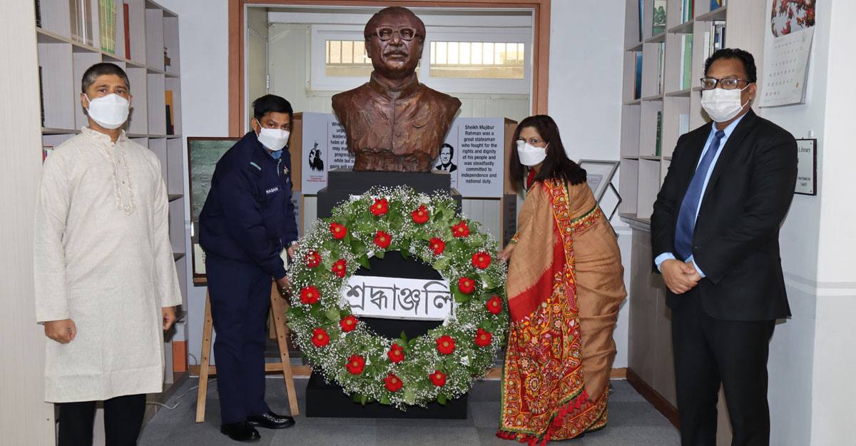 জাতির পিতার ভাস্কর্যে পুষ্পস্তবক অর্পণ