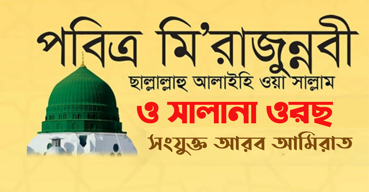 সংযুক্ত আরব আমিরাতে যথাযোগ্য মর্যাদা ও ধর্মীয় ভাবগাম্ভীর্যের মধ্য দিয়ে মিরাজুন্নবী সাল্লাল্লাহু আলাইহি ওয়াসাল্লাম (লাইলাতুল মিরাজুন্নবী) ও কাগতিয়ার হজরত গাউছুল আজম রাদিয়াল্লাহু আনহু’র সালানা ওরছে পাক (১০ ফেব্রুয়ারি) বুধবার রাতে উদযাপিত হবে।