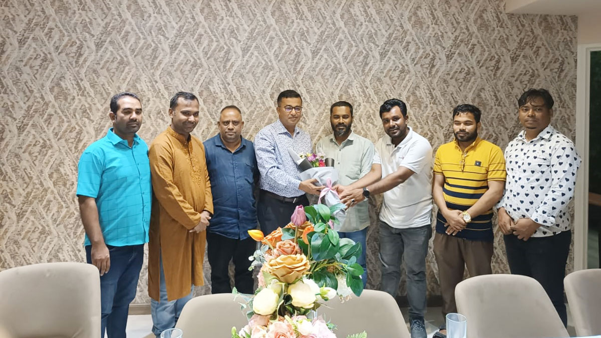 ঢাকা পোস্টের সম্পাদক মহিউদ্দিন সরকারকে ফুলেল শুভেচ্ছা জানাচ্ছেন মালদ্বীপে কর্মরত বাংলাদেশি সাংবাদিকরা/ ঢাকা পোস্ট