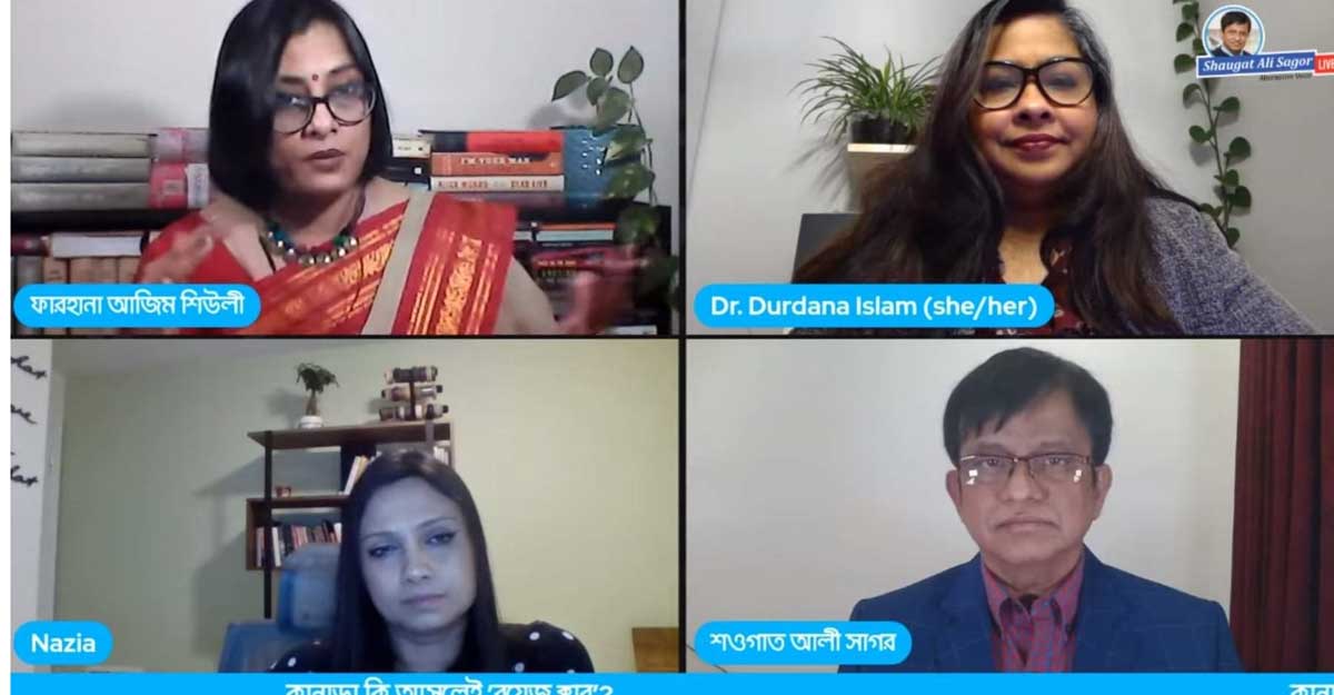 কানাডার বাংলা পত্রিকা নতুনদেশের প্রধান সম্পাদক শওগাত আলী সাগরের সঞ্চালনায় সামাজিক যোগাযোগ মাধ্যমে সম্প্রচারিত ‘শওগাত আলী সাগর লাইভ’ অনুষ্ঠানে তারা এ মতামত দেন। কানাডার স্থানীয় সময় বুধবার রাতে কানাডা কি এখনো বয়েজ ক্লাব শিরোনামে এই আলোচনায় অংশ নেন উইনিপেগ ইউনিভার্সিটির অধ্যাপক এবং ম্যানিটোবা এনডিপির স্ট্যাটাস অব উইমেন কমিটির চেয়ারপারসন ড. দুরদানা ইসলাম, রয়্যাল ব্যাংক অব কানাডার সিনিয়র পরিচালক, ইউনিভার্সিটি অব টরন্টোর অধ্যাপক নাজিয়া শাহরিন এবং ঢাকা বিশ্ববিদ্যালয়ের সাবেক সহকারি অধ্যাপক, লেখক ও অনুবাদক ফারহানা আজিম শিউলি।