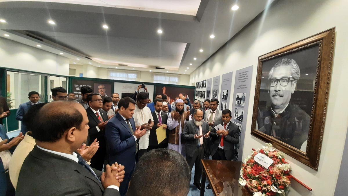 মিনিস্টার (শ্রম) এবং চার্জ দি অ্যাফেয়ার্স মোহাম্মদ আবুল হোসেন তার বক্তব্যে সর্বকালের সর্বশ্রেষ্ঠ বাঙালি, জাতির পিতা বঙ্গবন্ধু শেখ মুজিবুর রহমানকে গভীর শ্রদ্ধার সঙ্গে স্মরণ করার পাশাপাশি ১৯৭৫ সালের ১৫ আগস্ট স্বাধীনতা বিরোধী ঘাতকচক্রের হাতে নৃশংস হত্যাকাণ্ডে শাহাদাত বরণকারীদের গভীর শ্রদ্ধার সঙ্গে স্মরণ করেন। স্মরণ করেন জাতীয় চার নেতা, ৩০ লাখ শহীদ, সম্ভ্রম হারা দুই লাখ মা-বোন এবং জাতির শ্রেষ্ঠ সন্তান বীর-মুক্তিযোদ্ধাদের, যাদের মহান আত্মত্যাগের বিনিময়ে স্বাধীন ও সার্বভৌম বাংলাদেশের অভ্যুদয় ঘটে।