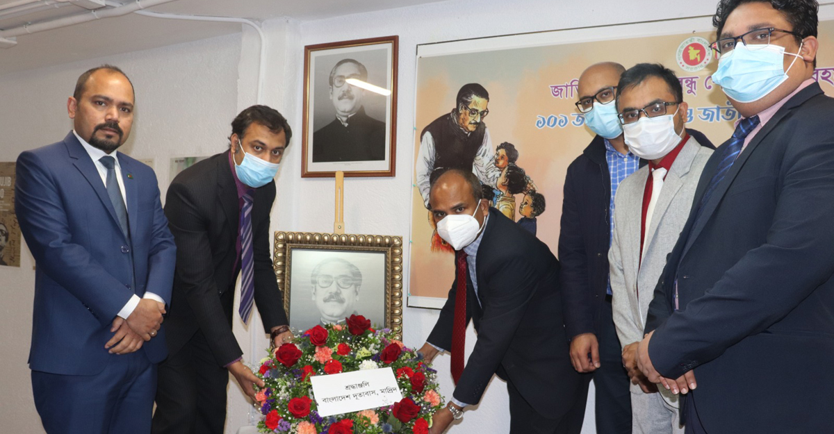 স্পেনের মাদ্রিদে অবস্থিত বাংলাদেশ দূতাবাস যথাযোগ্য মর্যাদায় জাতির পিতা বঙ্গবন্ধু শেখ মুুজিবুর রহমানের জন্মশতবার্ষিকী ও জাতীয় শিশু দিবস উদযাপন করেছে।