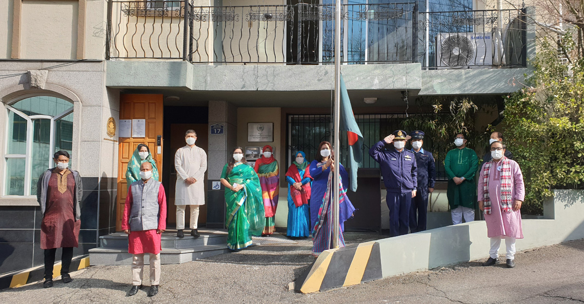 বুধবার (১৭ মার্চ) স্থানীয় সময় সকাল সাড়ে ৯টায় রাষ্ট্রদূত আবিদা ইসলাম দূতাবাস প্রাঙ্গণে জাতীয় পতাকা উত্তোলনের মাধ্যমে দিবসের আনুষ্ঠানিকতার সূচনা করেন। সামাজিক দূরত্ব মেনে দূতাবাসের কর্মকর্তা-কর্মচারীরা এতে অংশ নেন। পরে রাষ্ট্রদূতসহ দূতাবাসের কর্মকর্তারা জাতির পিতার প্রতিকৃতিতে পুষ্পস্তবক অর্পণ করেন।