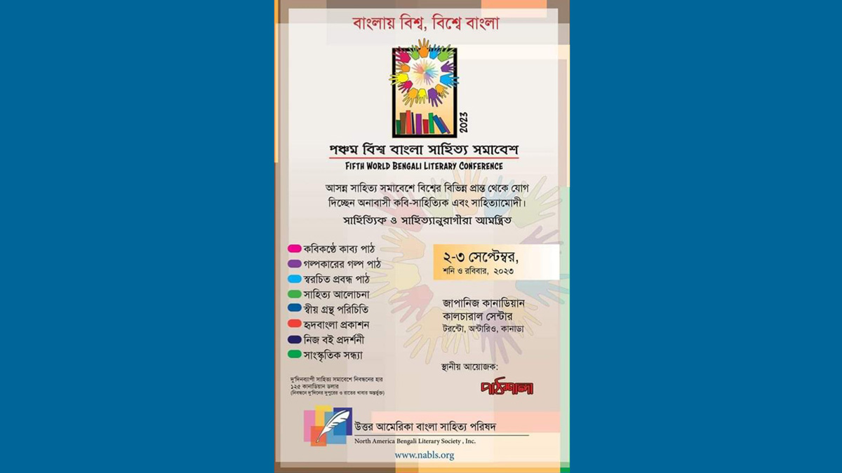 উত্তর আমেরিকা বাংলা সাহিত্য পরিষদ পঞ্চমবারের মতো বিশ্ব বাংলা সাহিত্য সমাবেশের আয়োজন করেছে কানাডার টরন্টো শহরে।