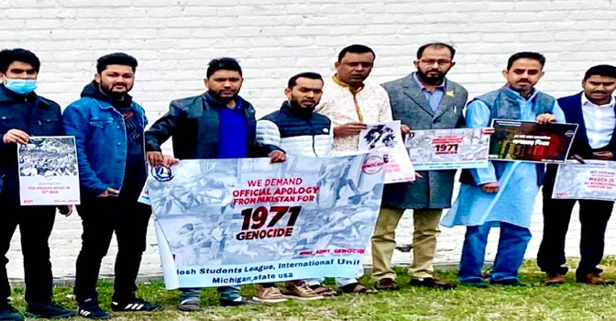 ২৫ মার্চ গণহত্যা দিবসের আন্তর্জাতিক স্বীকৃতির দাবিতে মানববন্ধন করেছে যুক্তরাষ্ট্রের মিশিগান স্টেট ছাত্রলীগ। রোববার (২৮ মার্চ) এ মানববন্ধন করা হয়। সেই সঙ্গে ওয়াশিংটনস্থ বাংলাদেশ দূতাবাসে ইমেইলে স্মারকলিপি দিয়েছে ছাত্রলীগের নেতাকর্মীরা।