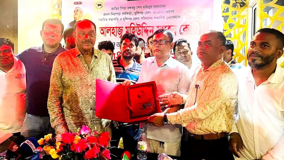 মালদ্বীপে সংবর্ধিত হলেন বঙ্গবন্ধুর চিফ সিকিউরিটি অফিসার ও মুন্সিগঞ্জ জেলা আওয়ামী লীগের সভাপতি ও মুন্সীগঞ্জ জেলা পরিষদের চেয়ারম্যান বীর মুক্তিযোদ্ধা আলহাজ্ব মহিউদ্দিন।