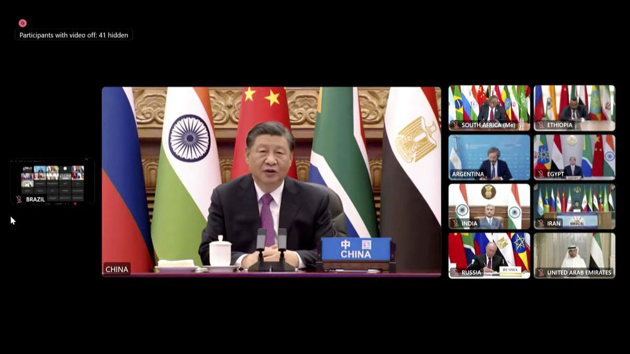মঙ্গলবার (২১ নভেম্বর) ব্রিকসের চেয়ার দক্ষিণ আফ্রিকার প্রেসিডেন্ট সিরিল রামাফোসার সভাপতিত্বে বৈঠকে ব্রাজিল, রাশিয়া, ভারত, চীনের নেতারা এবং সৌদি আরব, আর্জেন্টিনা, মিশর, ইথিওপিয়া, ইরান ও সংযুক্ত আরব আমিরাতের আমন্ত্রিত প্রতিনিধি ও জাতিসংঘের মহাসচিব আন্তোনিও গুতেরেস অংশ নেন।