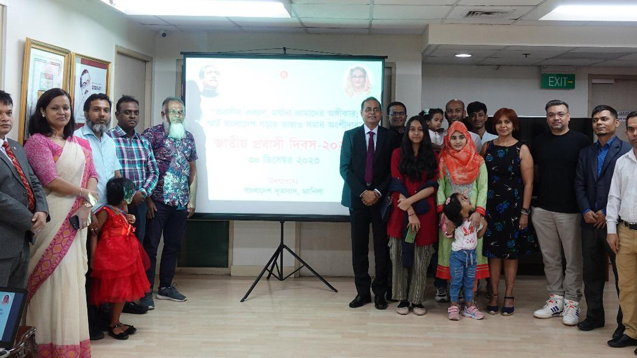 ‘প্রবাসীর কল্যাণ, মর্যাদা আমাদের অঙ্গীকার, স্মার্ট বাংলাদেশ গড়ায় তারাও সমান অংশীদার’ প্রতিপাদ্যে বাংলাদেশ দূতাবাস, ম্যানিলাতে জাতীয় প্রবাসী দিবস-২০২৩ পালিত হয়েছে।