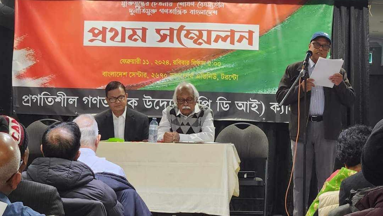 মুক্তিযুদ্ধের চেতনায় দুর্নীতিমুক্ত, বৈষম্যহীন ও গণতান্ত্রিক বাংলাদেশের দাবিতে টরন্টোতে অনুষ্ঠিত হয়েছে প্রগতিশীল গণতান্ত্রিক উদ্যোগ (পিডিআই) কানাডার প্রথম সম্মেলন।