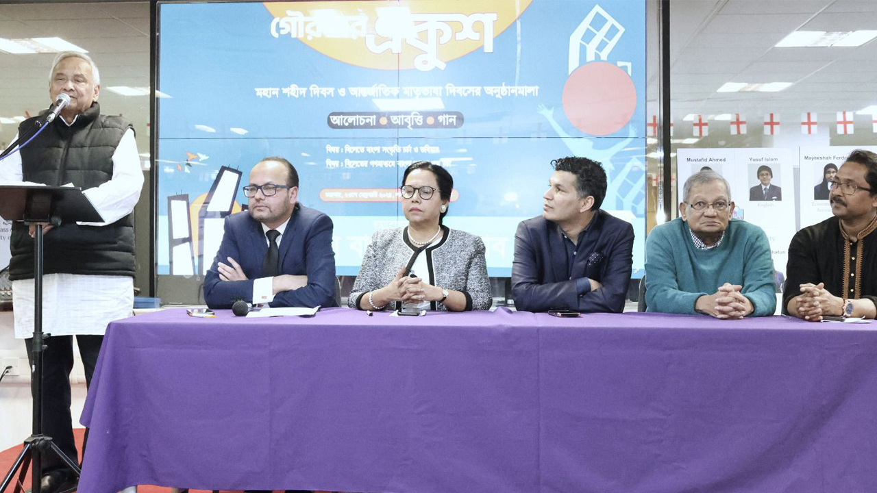 অনুষ্ঠানের শুরুতে ভাষা শহীদদের প্রতি শ্রদ্ধা জানাতে এক মিনিট দাঁড়িয়ে নীরবতা পালন করা হয়।