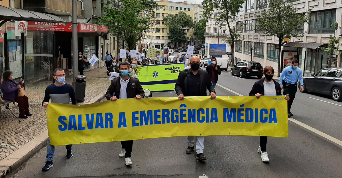 পর্তুগালের (ন্যাশনাল ইনস্টিটিউট অফ মেডিকেল ইমার্জেন্সি-আই এন ই এম) জাতীয় জরুরি স্বাস্থ্য সেবা কর্মীদের সংগঠন সিন্ডিকাটো ডোস টেকনিকো ডে ইমার্জেন্সিয়া প্রি হসপিটালার-এর উদ্যোগে বিক্ষোভ মিছিলটি অনুষ্ঠিত হয়।