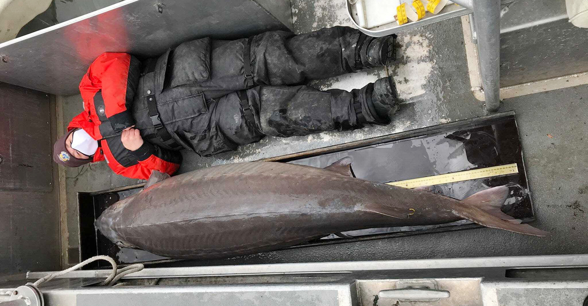ডেট্রয়েট নদীতে ধরা পড়েছে দানব আকারের স্টার্জন মাছ