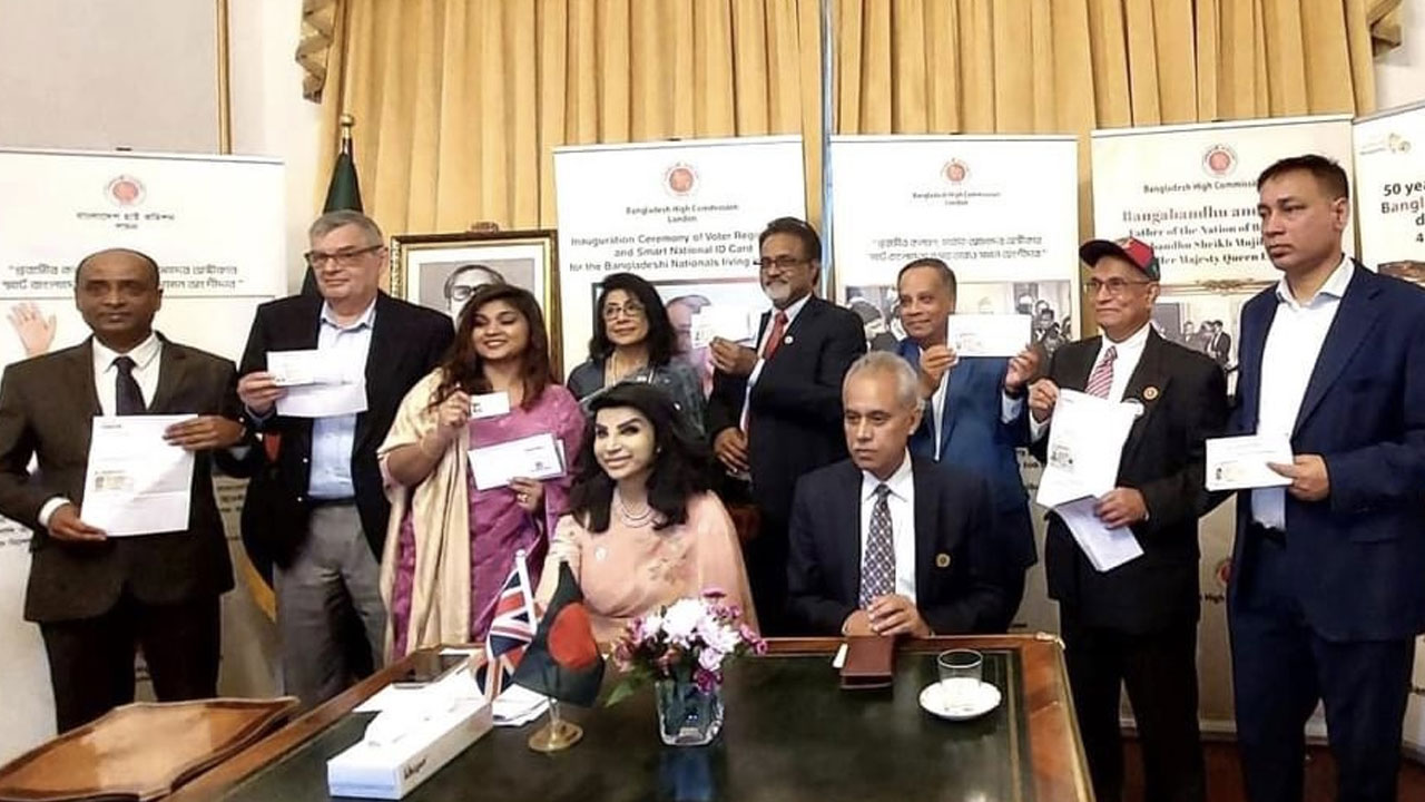 হাইকমিশনার সাইদা মুনা তাসনিম বলেন, প্রধানমন্ত্রী শেখ হাসিনার ডিজিটাল বাংলাদেশের ভিশন অনুসারে গত বছর ৩০ ডিসেম্বর জাতীয় প্রবাসী দিবসে লন্ডন হাইকমিশন ভোটার রেজিস্ট্রেশন ও স্মার্ট এনআইডি কার্ড প্রদানের কার্যক্রম শুরু হয়। এর আগে ২০২৩ সালের নভেম্বর মাসে পরীক্ষামূলকভাবে লন্ডন ও ম্যানচেস্টার মিশনে ভোটার রেজিস্ট্রেশন ও স্মার্ট এনআইডি কার্ডের নিবন্ধন শুরু হয়। এ পর্যন্ত যুক্তরাজ্য থেকে ৪২৬৪টি আবেদন জমা হয়েছে। এর মধ্যে প্রায় ২৬০০ আবেদনকারী হাইকমিশনে অ্যাপয়েন্টমেন্ট করে বায়োমেট্রিক প্রক্রিয়া সম্পন্ন করেছেন। ইতোমধ্যে এদের ৫২৮ জনের স্মার্ট এনআইডি কার্ড বিতরণের জন্য লন্ডন মিশনে পৌঁছেছে। খুব শীঘ্রই তাদের কাছে কার্ড গ্রহণের বার্তা প্রেরণ করা হবে।