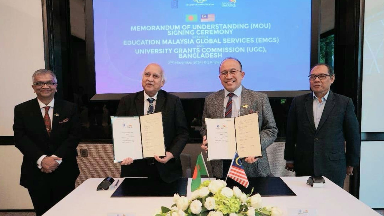 বাংলাদেশ বিশ্ববিদ্যালয় মঞ্জুরি কমিশন (ইউজিসি) এবং এডুকেশন মালয়েশিয়া গ্লোবাল সার্ভিসেসের (ইএমজিএস), উচ্চশিক্ষা মন্ত্রণালয়ের মধ্যে একটি সমঝোতা স্মারক (এমওইউ) স্বাক্ষরিত হয়েছে।