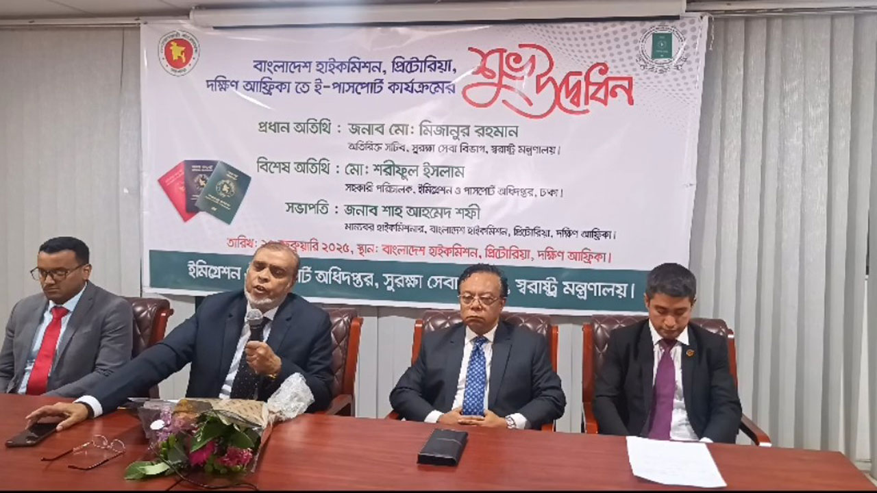 দক্ষিণ আফ্রিকায় বাংলাদেশ দূতাবাসের ই-পাসপোর্ট কার্যক্রমের উদ্বোধন করা হয়েছে।