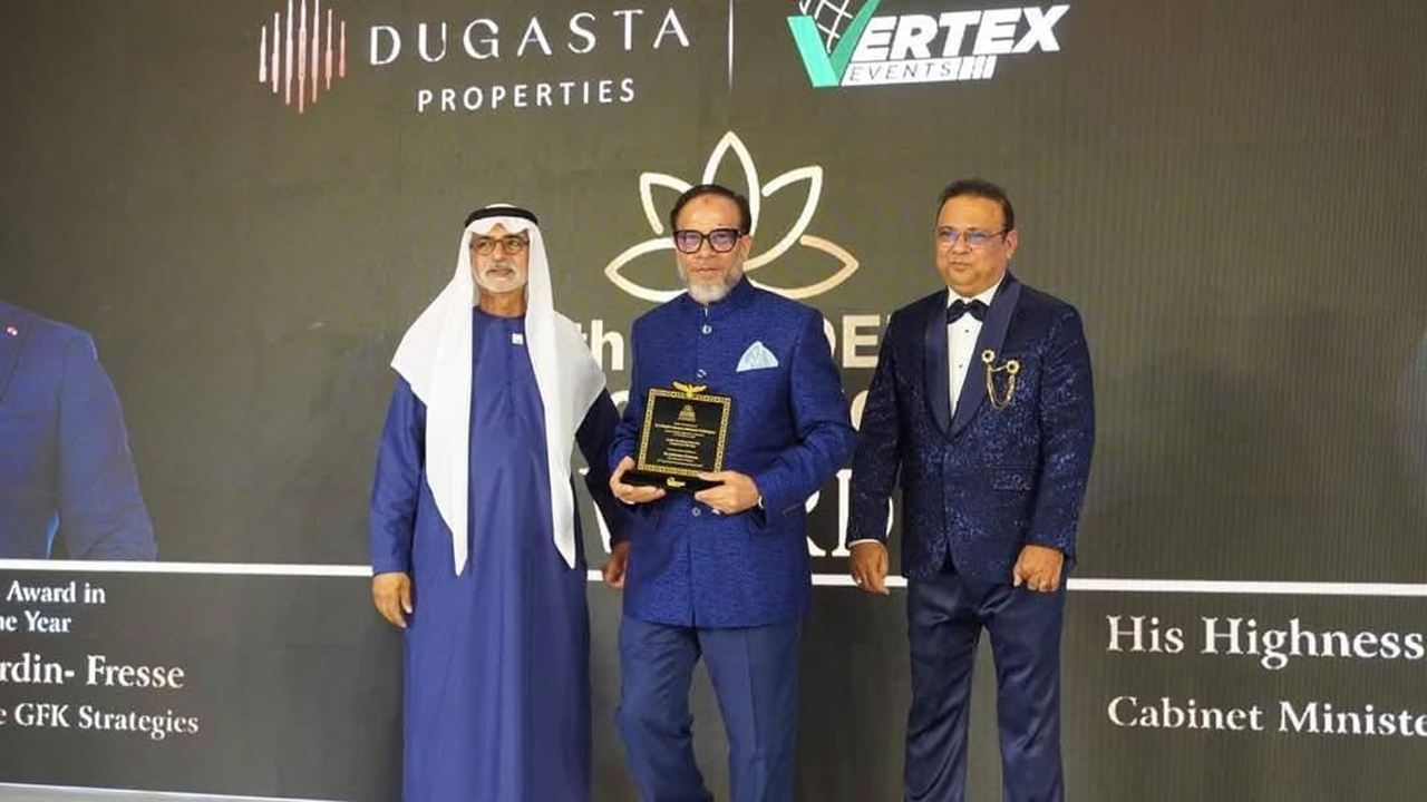 রোববার (১৮ মে) দুবাই ইন্টারকন্টিনেন্টাল হোটেল বলরুমে আমিরাতের প্রভাবশালী মন্ত্রী ও রাজ পরিবারের সদস্য শেখ নাহিয়ান বিন মোবারক আল নাহিয়ান এ পুরস্কার তার হাতে তুলে দেন।