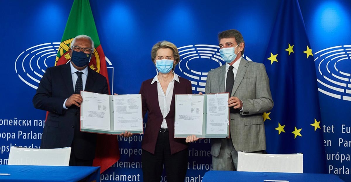 ইইউ প্রেসিডেন্সি কাউন্সিলের রাষ্ট্রপতি আন্তোনিও কস্তা, ইউরোপিয়ান কমিশনের প্রেসিডেন্ট উর্সুলা ভন ডের লিয়েন এবং ইউরোপিয়ান পার্লামেন্টের প্রেসিডেন্ট ডেভিড মারিয়া সাসোলি সোমবার (১৪ জুন) ইইউর কেন্দ্রীয় কার্যালয়ে এ স্বাক্ষর করেন।