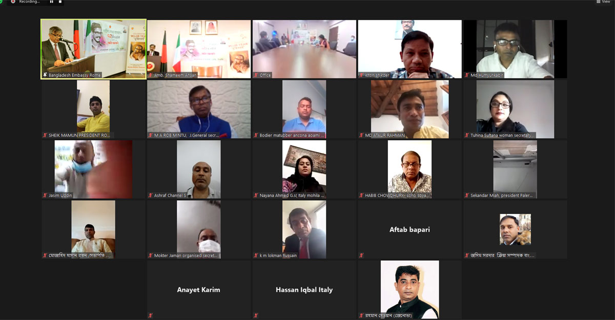 উল্লেখ্য, ইতালিতে বিদ্যমান করোনা পরিস্থিতির কারণে অনুষ্ঠানটি অনলাইন প্ল্যাটফর্ম জুমে অনুষ্ঠিত হয়। তবে মোনাজাতে সশরীরে অংশ নেন দূতাবাসের কর্মকর্তা-কর্মচারীরা।