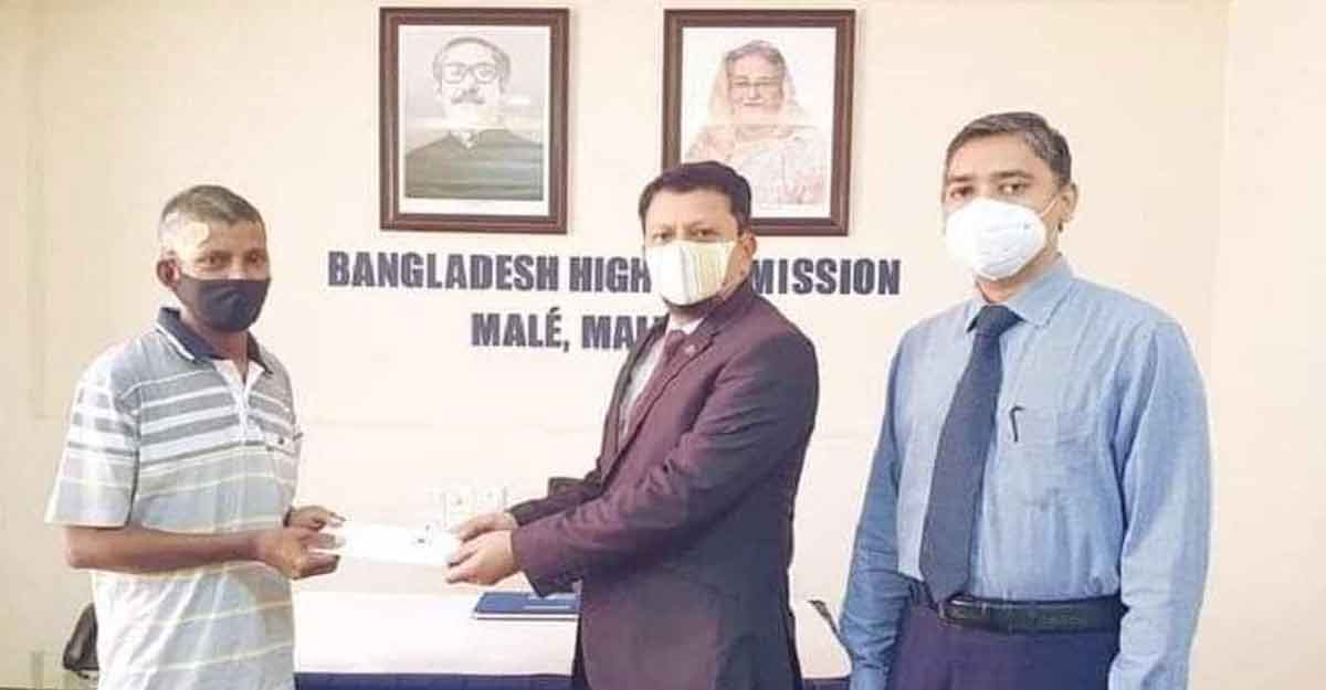 অসুস্থ প্রবাসীকে মালদ্বীপ দূতাবাসের প্লেনের টিকিট হস্তান্তর