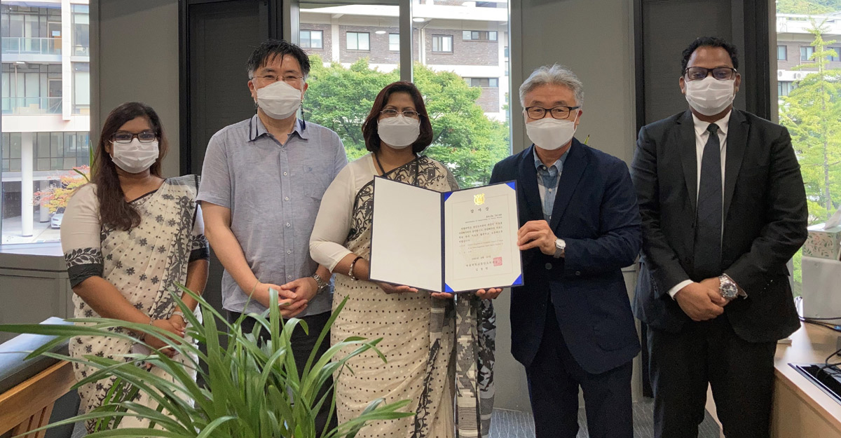 কিম মিউং হন এ সময় রাষ্ট্রদূত আবিদা ইসলামকে ধন্যবাদ জ্ঞাপন করে একটি সম্মাননা পত্র হস্তান্তর করেন।