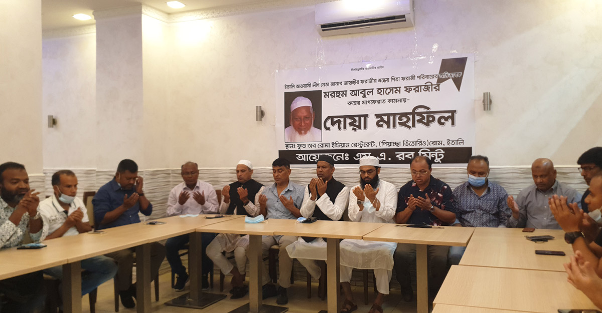ইতালি আওয়ামী লীগ নেতা ও ফরাজী রিয়েল এস্টেটের চেয়ারম্যান জাহাঙ্গীর ফরাজীর বাবা মরহুম আবুল হাসেমের রুহের মাগফেরাত কামনায় দোয়া মাহফিল অনুষ্ঠিত হয়েছে।