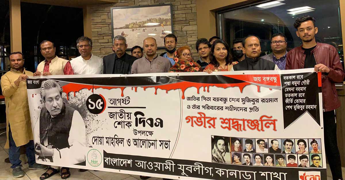 কানাডার ভ্যানকুভারে জাতির পিতা বঙ্গবন্ধু শেখ মুজিবুর রহমানের ৪৬তম শাহাদাতবার্ষিকী (জাতীয় শোক দিবস) ও ২১ আগস্টের গ্রেনেড হামলা উপলক্ষে বাংলাদেশ আওয়ামী যুবলীগ, কানাডা শাখার উদ্যোগে দোয়া মাহফিল, আলোচনা ও স্মরণ সভা অনুষ্ঠিত হয়েছে।