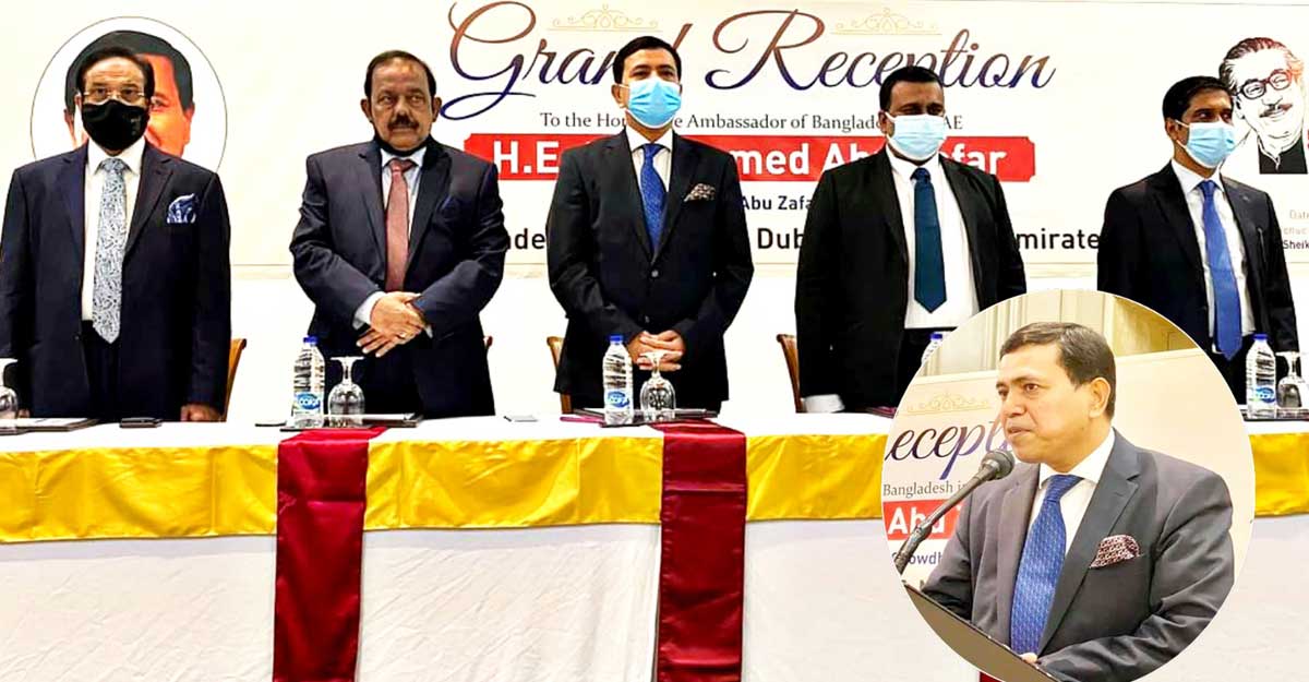 বাংলাদেশের রাষ্ট্রদূত হিসেবে নিযুক্ত হওয়ায় মোহাম্মদ আবু জাফরকে স্বাগত জানিয়ে গত বৃহস্পতিবার (১০ ডিসেম্বর) রাতে দুবাইয়ে ক্রাউন প্লাজা হোটেলে আয়োজিত সংবর্ধনায় প্রধান অতিথির বক্তব্যে রাষ্ট্রদূত এ কথা বলেন। বাংলাদেশ কমিউনিটি দুবাই ও উত্তর আমিরাতের উদ্যোগে রাষ্ট্রদূতকে এ সংবর্ধনা দেওয়া হয়। আমিরাতে বাংলাদেশ কমিউনিটির প্রশংসা করে কমিউনিটির নেতা ও প্রবাসীদের উদ্দেশ্যে রাষ্ট্রদূত বলেন, দেশকে উন্নয়নের দিকে এগিয়ে নেওয়ার লক্ষ্যে আপনাদের অবদান উল্লেখযোগ্য। তাই দেশের উন্নয়নে আরও ব্যাপকভাবে কাজ করুন।