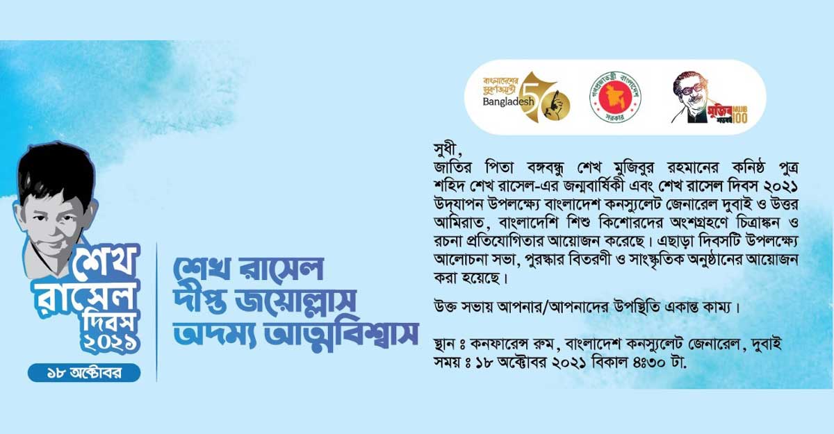 দুবাইয়ে শেখ রাসেল দিবস উদযাপিত হবে সোমবার