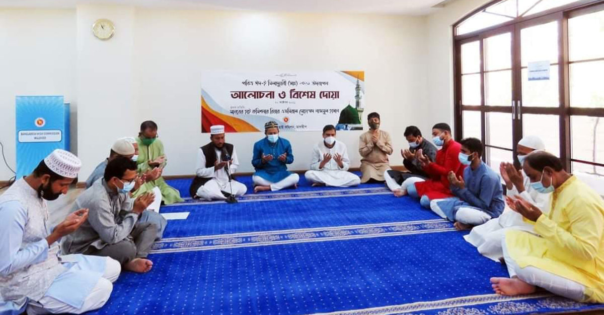 পরে আলোচনা সভা ও মুসলিম উম্মাহ্ সহ সমগ্র মানবজাতির জন্য বিশেষ দোয়া করা হয়। মাওলানা মো. তাজুল ইসলামের পরিচালনায় অনুষ্ঠানে প্রধান অতিথি ছিলেন মালদ্বীপে নিযুক্ত বাংলাদেশের রাষ্ট্রদূত রিয়ার অ্যাডমিরাল মোহাম্মদ নাজমুল হাসান। প্রধান অতিথি তার আলোচনায় বলেন, মহানবী হযরত মুহাম্মদ (সা.) হলেন বিশ্ব শান্তির অগ্রদূত। তার সার্বজনীন শান্তির বার্তা দুনিয়ার সর্বত্র ছড়িয়ে দিতে হবে। সমাজে সাম্য ও সম্প্রীতি প্রতিষ্ঠায় তার আদর্শের কোনো বিকল্প নেই।
