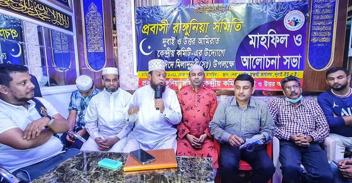 প্রবাসী রাঙ্গুনিয়া সমিতি দুবাই ও উত্তর আমিরাত কেন্দ্রীয় কমিটির উদ্যোগে পবিত্র ঈদে মিলাদুন্নবী (স.) উদযাপন উপলক্ষে মিলাদ ও আলোচনা সভা অনুষ্ঠিত হয়েছে দুবাইয়ে।
