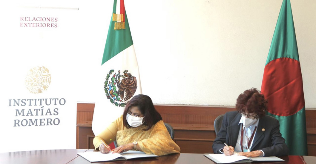মেক্সিকোর মাতিয়াস রোমেরো ইনস্টিটিউটের পক্ষ থেকে পররাষ্ট্র মন্ত্রণালয়ের ভাইস মিনিস্টার কারম্যান মোরেনো টস্কানো এবং বাংলাদেশের ফরেন সার্ভিস একাডেমির পক্ষে রাষ্ট্রদূত আবিদা ইসলাম সমঝোতা স্মারকে স্বাক্ষর করেন।