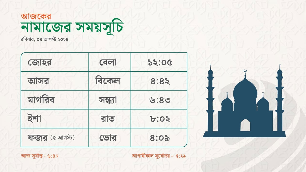 নামাজের সময়সূচি - ০৪ আগস্ট ২০২৪