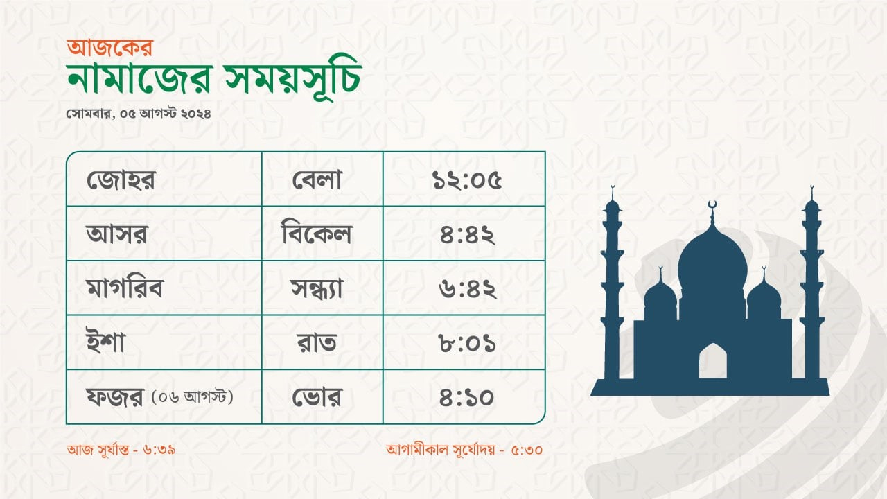 নামাজের সময়সূচি - ০৫ আগস্ট ২০২৪