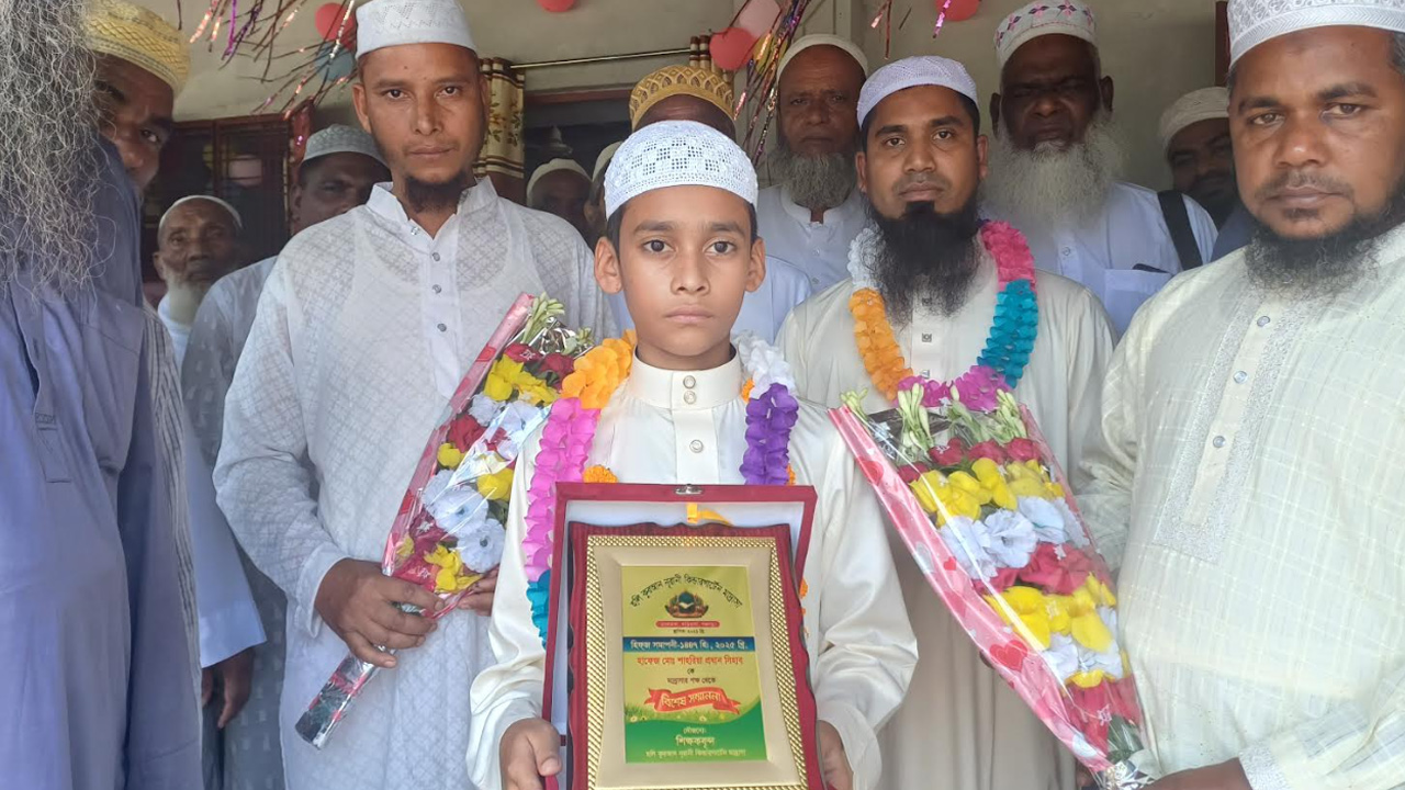 বৃহস্পতিবার (৯ অক্টোবর) বিকেলে তার এই অর্জনকে কেন্দ্র করে মাদরাসায় অনুষ্ঠিত হয়েছে বর্ণাঢ্য সংবর্ধনা অনুষ্ঠান। এতে তাকে মাদরাসার পক্ষ থেকে রাজকীয় বিদায় দেওয়া হয়। এতে এলাকাজুড়ে আনন্দ-উল্লাস দেখা যায়।