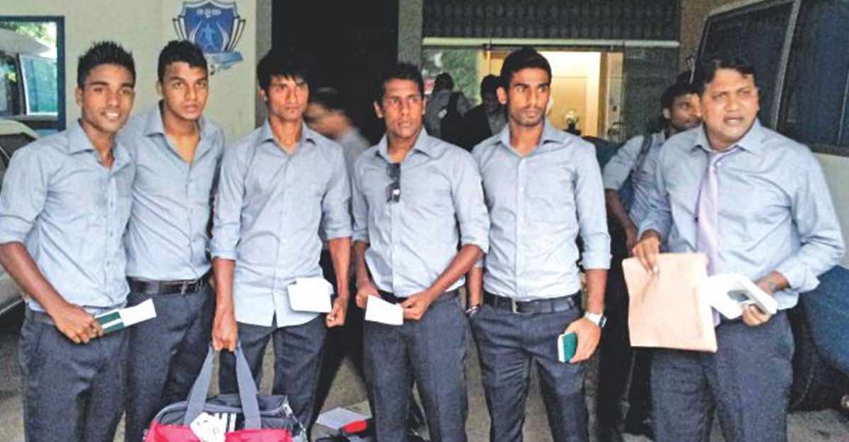 জাতীয় দলের ফুটবলারদের সাথে ম্যানেজার ইকবাল সবার ডানে। ফাইল ছবি