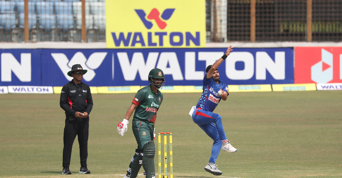 ‘থার্ড টাইম ইন এ রো ইন দিস সিরিজ!’ -তৃতীয় ওয়ানডেতে বাংলাদেশের ইনিংসের ১১তম ওভারের প্রথম বোল্ড হন তামিম ইকবাল। এরপর ধারাভাষ্যকার পারভেজ মাহরুফ এভাবেই ধারা বিবরণী করলেন। তামিমকে ফিরিয়ে আনন্দে আত্মহারা আফগানিস্তানের পেসার ফজল হক ফারুকি। তিন ম্যাচ সিরিজে টানা তিনবার তামিমকে আউট করলেন এই বাঁহাতি পেসার। আগের দুবার লেগ বিফোরের ফাঁদে ফেললেও এবার টাইগার অধিনায়ককে বোল্ড করেন ফারুকি।