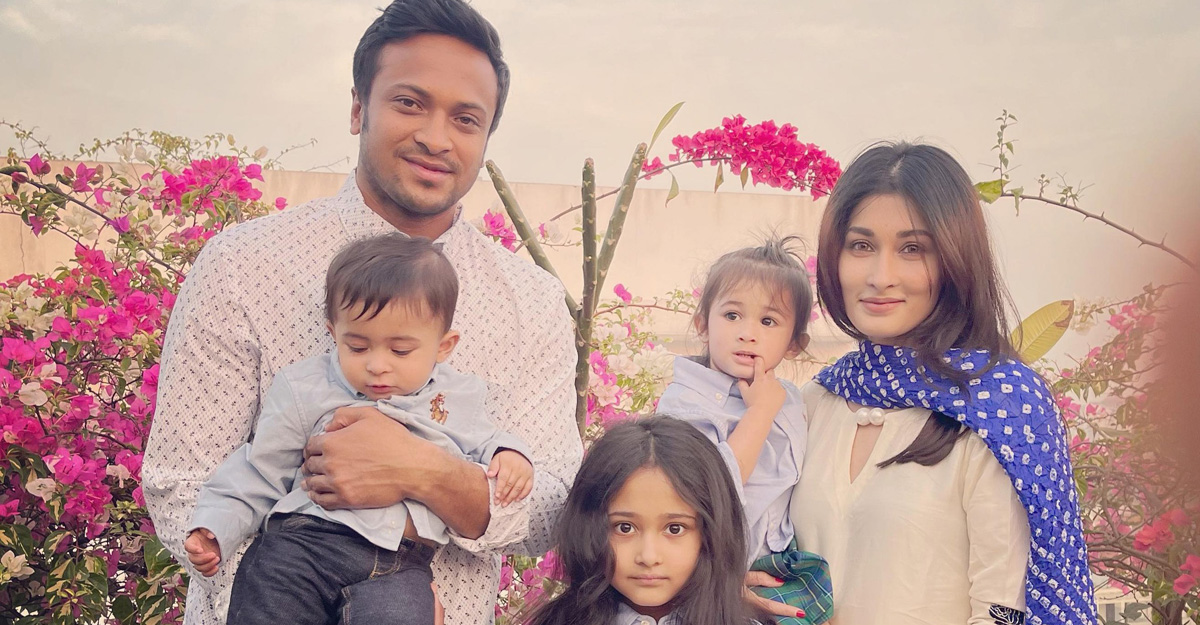 সাকিবের স্ত্রী-সন্তান অবশ্য বাংলাদেশে থাকেন না। ছুটিতে ঘুরতে এসেছেন তারা। আলাইনা হাসান অব্রি এর আগে দেশে আসলেও বাকি দুই সন্তান এবারই প্রথম এসেছে বাংলাদেশে। গত ফেব্রুয়ারিতে শেষ হওয়া বিপিএলের সময় দেশে আসেন সাকিবের স্ত্রী-সন্তানরা।