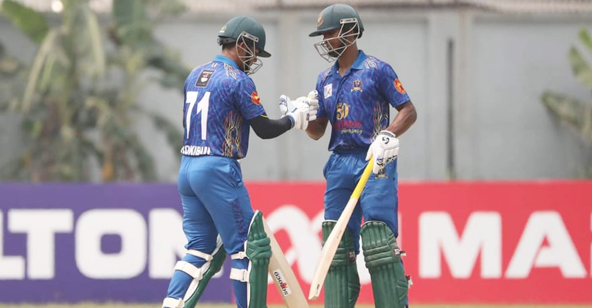 সোমবার ব্যাটিং করতে নেমে ২০ রানে ৩ উইকেট হারিয়ে ফেলে রূপগঞ্জ। এরপর শুরু হয় নাঈম-রকিবুলের গল্প। দুজনে শুরুতে উইকেটে থিতু হয়ে ইনিংস গড়ায় মনোযোগ দেন। হাফ সেঞ্চুরির পর ধীরে ধীরে এগোতে থাকেন সেঞ্চুরির দিকে। রকিবুল ১১২ বলে শতকের দেখা পেলেও নাঈম আটকে যান নব্বইয়ের ঘরে, ৯১ রানে। ৮ চার ও ৩ ছয়ে সপ্তম সেঞ্চুরির দেখা পান রকিবুল। পরে আরও একটি করে চার-ছয়ের মার যোগ করে আউট হন ১২১ রানে।