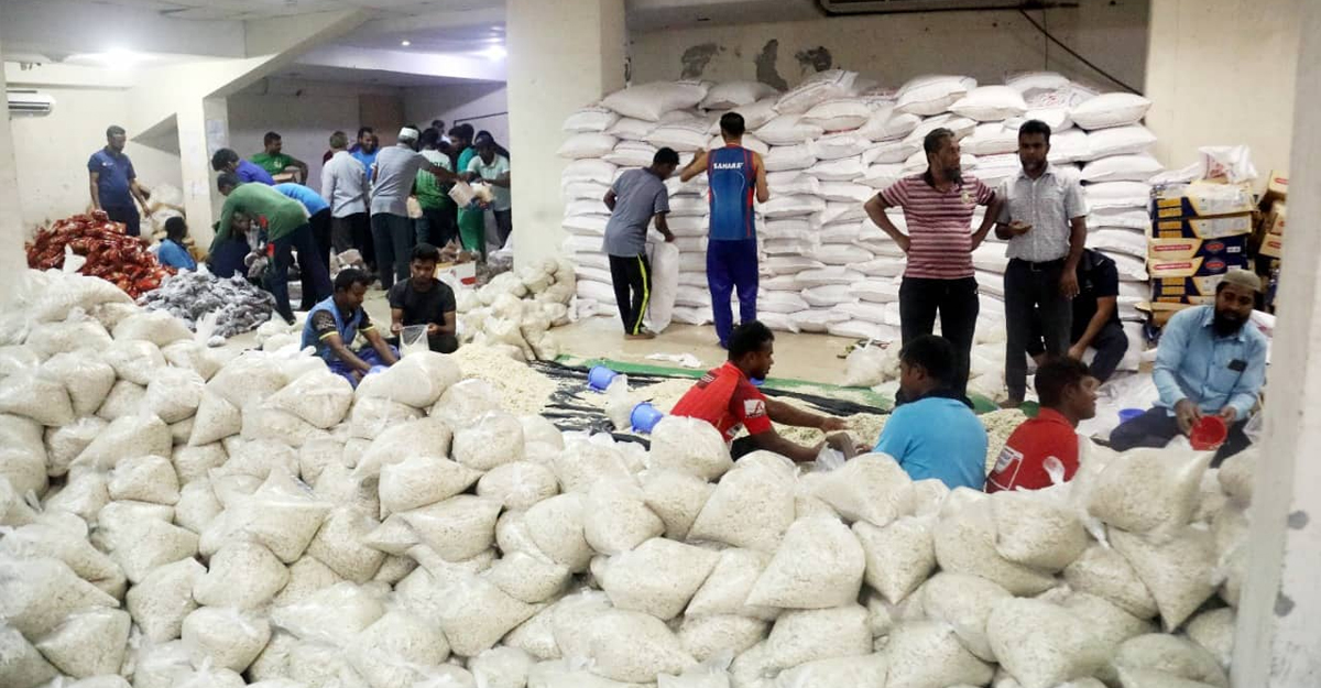 খাবারের প্যাকিং চলছে মিরপুরের বিসিবি ভবনে। সেখান থেকে ট্রাক ভর্তি করে পাঠানো হচ্ছে বন্যা দুর্গত এলাকায়। গতকাল সোমবার ১ হাজার ব্যাগ পাঠানো হয়েছে। আজ মঙ্গলবার পাঠানো হবে দেড় হাজার ব্যাগ এবং আগামীকাল বুধবার দেড় হাজার ব্যাগ পাঠানোর পরিকল্পনা আছে বিসিবির।