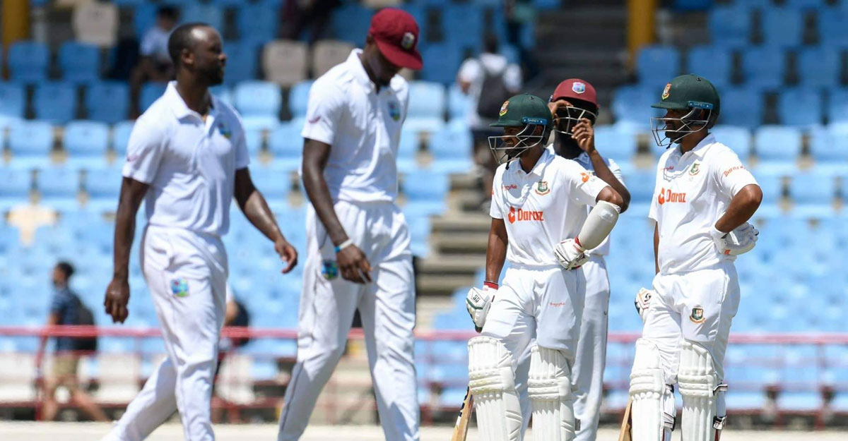 মজার ব্যাপার হলো দুই সেশনে শেষ হয়েছে ৫১ ওভারের খেলা। যেখানে উইন্ডিজ অধিনায়ক ক্রেইগ ব্র্যাথওয়েট ৬ জন বোলার ব্যবহার করলেও কোনো স্পিনার আনেননি।