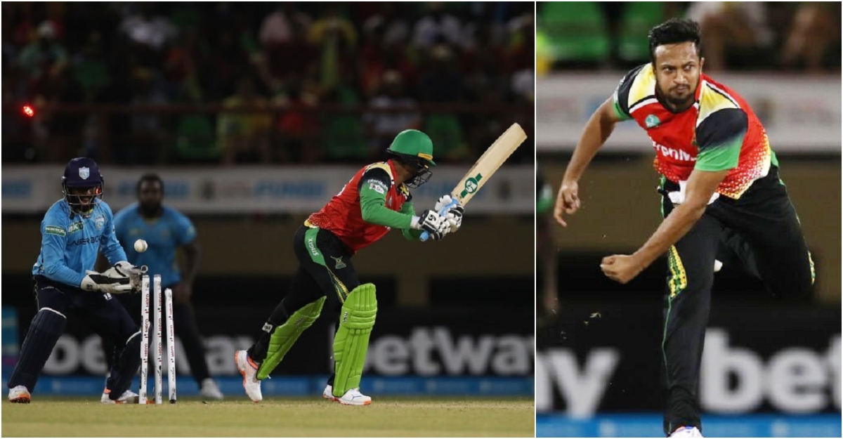 সাকিবের এমন বোলিংয়ের পরও সেন্ট লুসিয়া ২০ ওভার শেষে তুলে ফেলেছে ১৯৪ রান। ফ্যাফ ডু প্লেসির ৫৯ বলে ১০৩ রানের ইনিংসই মূলত ভিত গড়ে দিয়েছে এত বড় সংগ্রহের। জবাবে হেমরাজ চন্দরপল আর রাহমানউল্লাহ গুরবাজের ঝোড়ো ব্যাটিংয়ে ভালোই জবাব দিতে থাকে গায়ানা। ৪৩ বলে ৮১ রানে চন্দরপল ফেরার পরই খানিকটা বিপাকে পড়ে যায় গায়ানা। ২৬ বলে ৫২ করা গুরবাজও ফেরেন পরের ওভারেই, চারে নামা সাকিবও মার্ক ডিয়ালের বলে বোল্ড হয়ে ফেরেন ‘গোল্ডেন ডাক’ নিয়ে। এরপর শেই হোপ আর শিমরন হেটমায়ারের কল্যাণে সে বিপদ কাটিয়ে জয়ের বন্দরে পৌঁছে যায় গায়ানা।