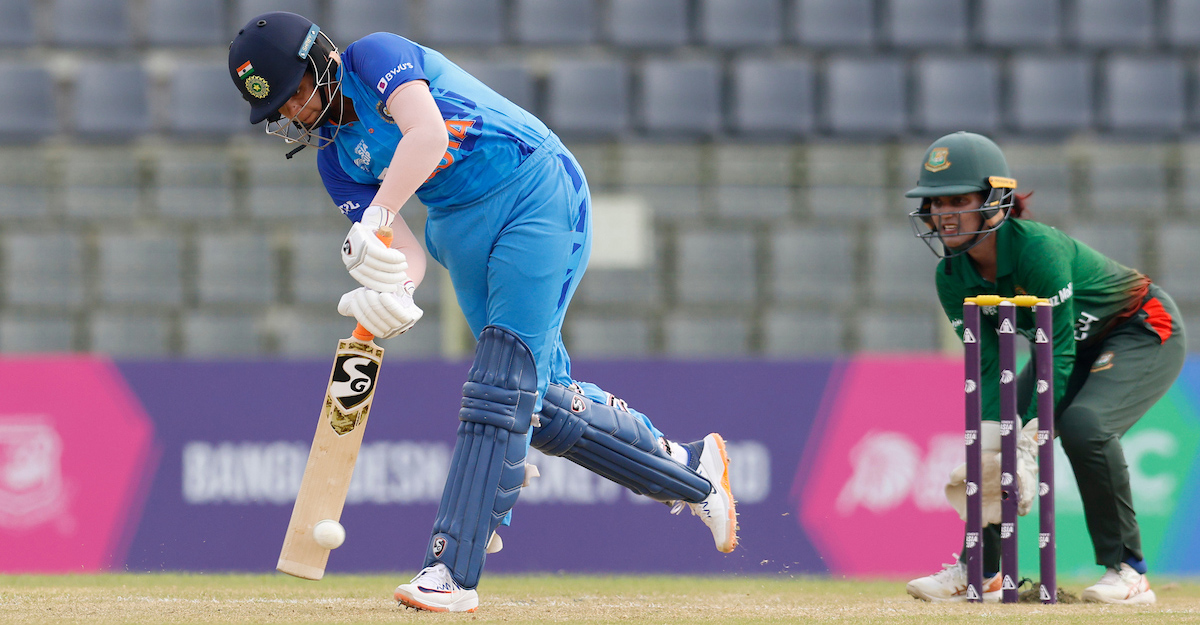 বাংলাদেশের বিপক্ষে আজ টসে জিতে ব্যাট করতে নামে ভারত। স্মৃতি আর শেফালির কল্যাণে উড়ন্ত সূচনা পায় দলটি। পাওয়ারপ্লেতে তুলে ফেলে ৫৯ রান। ভারতের প্রথম উইকেটের পতন হয় ৯৬ রানে। স্মৃতি মান্ধানা ফেরেন ৪৭ রান করে।