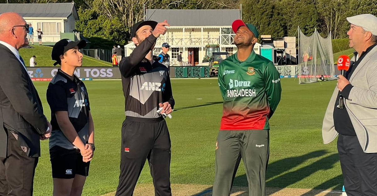 পাকিস্তানের বিপক্ষে প্রথম ম্যাচে হারের পর দ্বিতীয় ম্যাচে আজ রোববার নিউজিল্যান্ডের মুখোমুখি হয়েছে বাংলাদেশ। ত্রিদেশীয় সিরিজের এই ম্যাচে টস হেরেছেন অধিনায়ক সাকিব আল হাসান। নিউজিল্যান্ড অধিনায়ক কেন উইলিয়ামসন টস জিতেই নিয়েছেন ফিল্ডিংয়ের সিদ্ধান্ত।